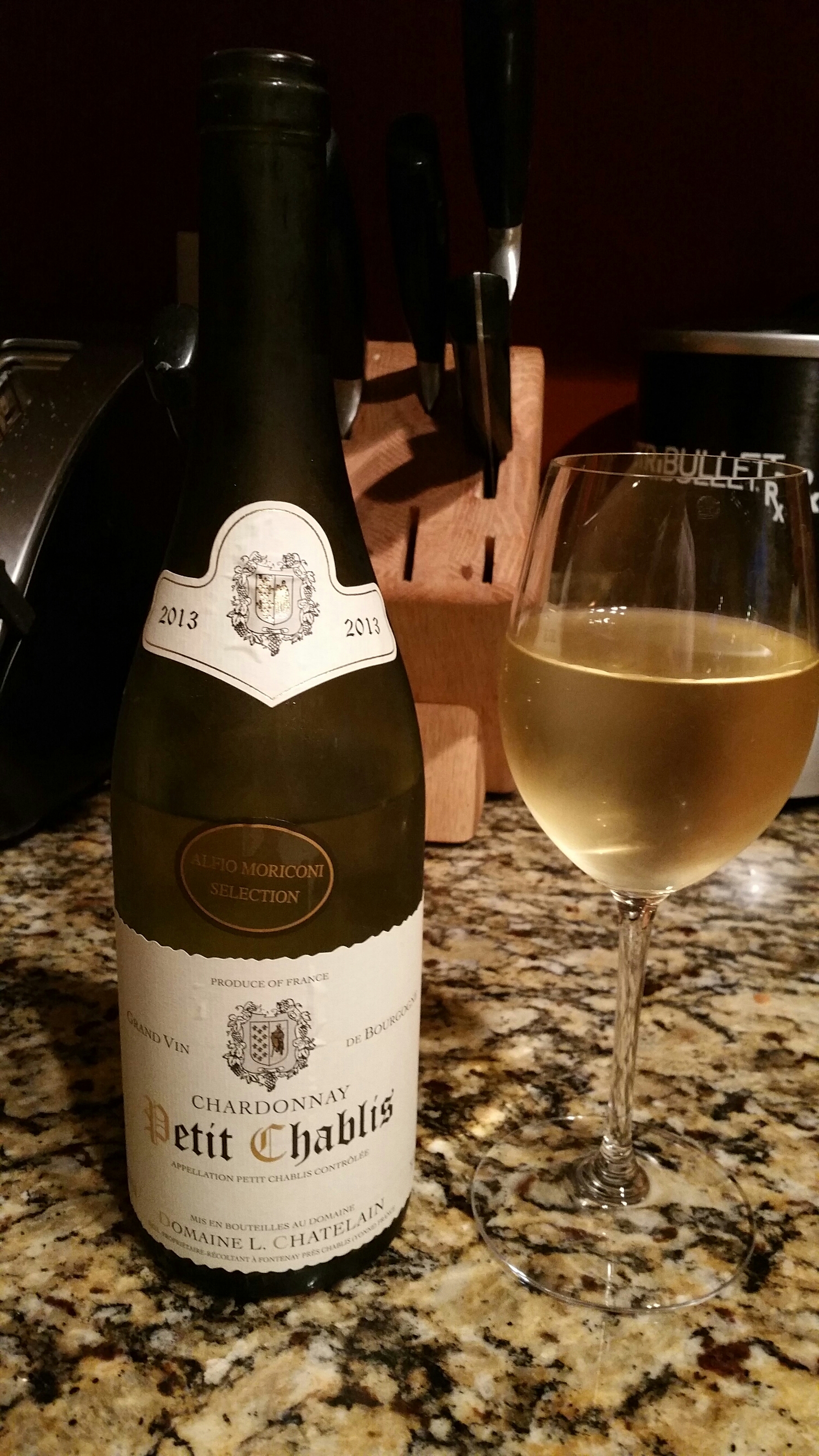 The color of golden straw. Aromas of green apple. Tart, elegant, fruity. Crisp and refreshing. An excellent white burgundy that is going well with my grilled chicken salad. Or just for drinking.