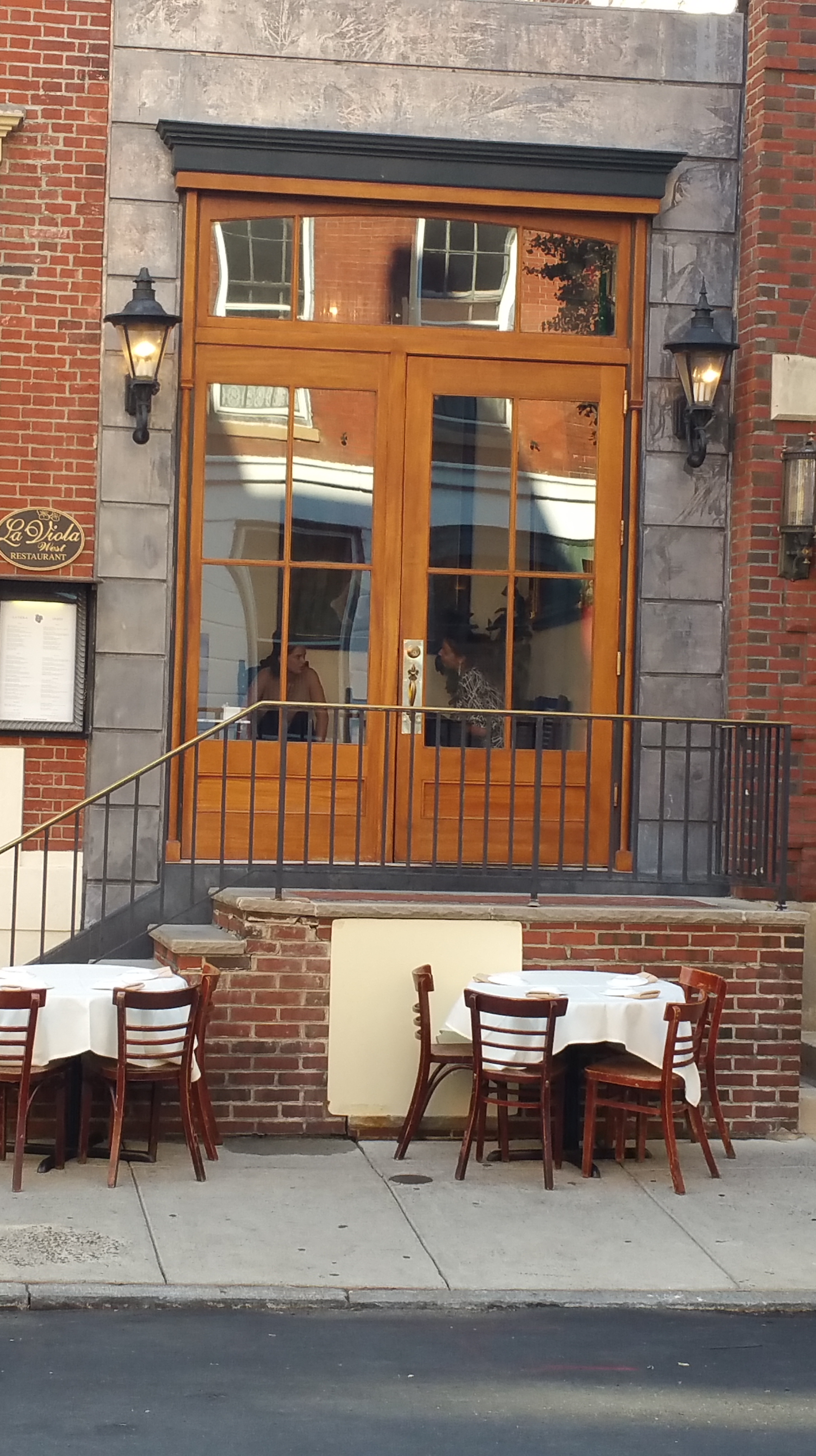 On our monthly night out in the city we chose La Viola Ovest.  Highly recommended by several friends and very much worth it.  On this night we met a couple of friends for dinner too.  The quaint restaurant sits across the street from its sister La Viola.  The night was great, EXCELLENT food, great wine, and conversation with good friends.  We started talking and enjoying ourselves I forgot to get pictures of the food and wine.  We ordered appetizers for the table and then we each had our own entrees.  Calamari, antipasto and mozzerella with roasted peppers I paired them with a wonderful white from Langhe .DELICIOUS.  The entrees were all shared, various forms of pasta, shrimp, ham and spinach, but the winner that night was by far the pork chop.  Grilled to perfection, seasoned mouthwatering goodness.  Oh my lovely.
