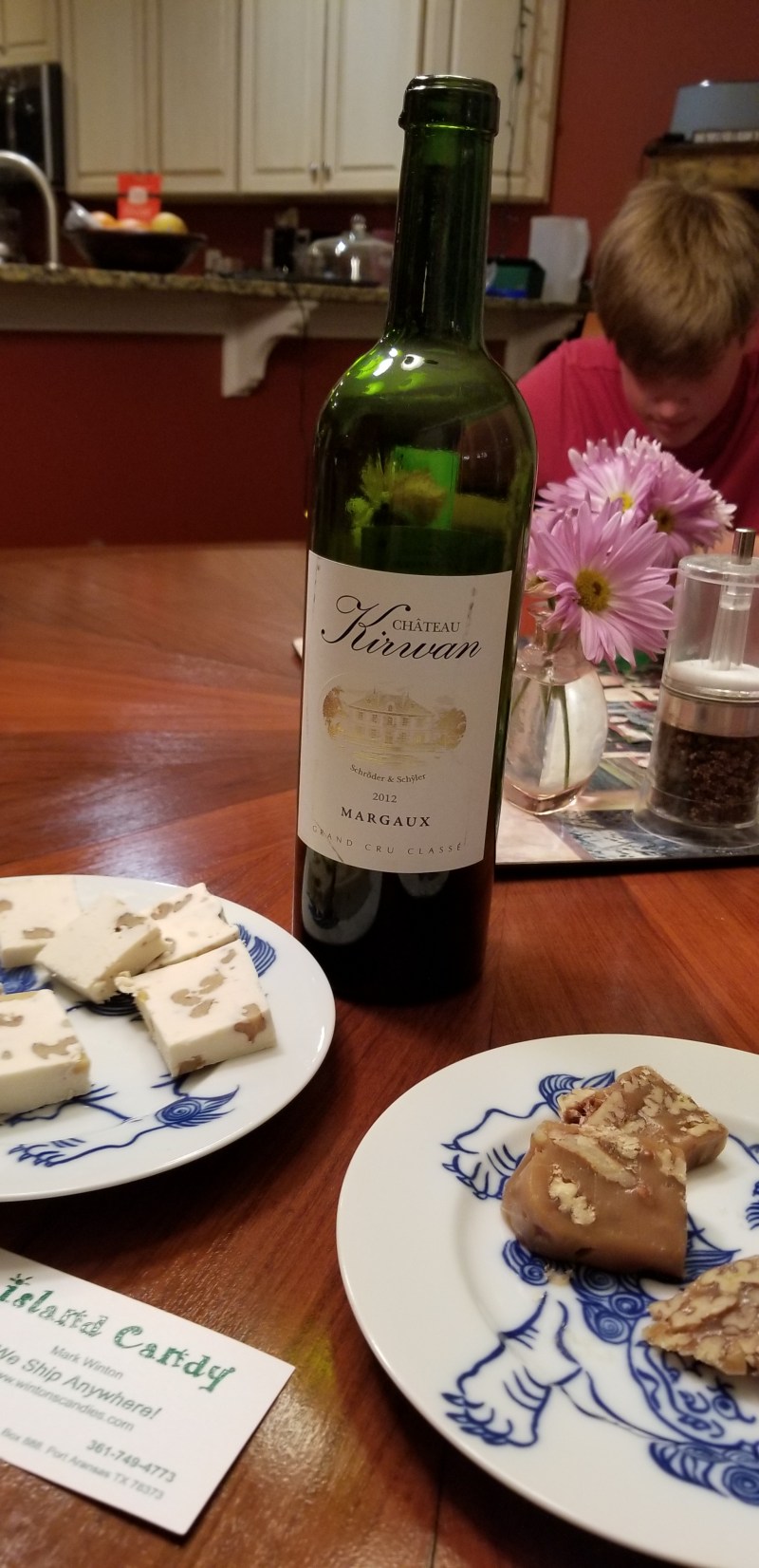 Ch. Kirwan 2012 Fabulous Ch. Kirwan 2012, paired with praline and white chocolate fudge. Oh so rich and smooth, both the wine and fudge. Share this: Click to share on X (Opens in new window) X Click to share on Facebook (Opens in new window) Facebook Like Loading... Related Posted In:Uncategorized